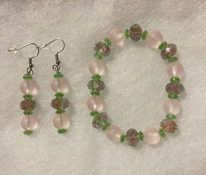 • Pink & Green Glass Bracelet/Earring Set
