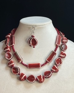 Asymmetric Red & White Focal Shell Cluster Necklace
